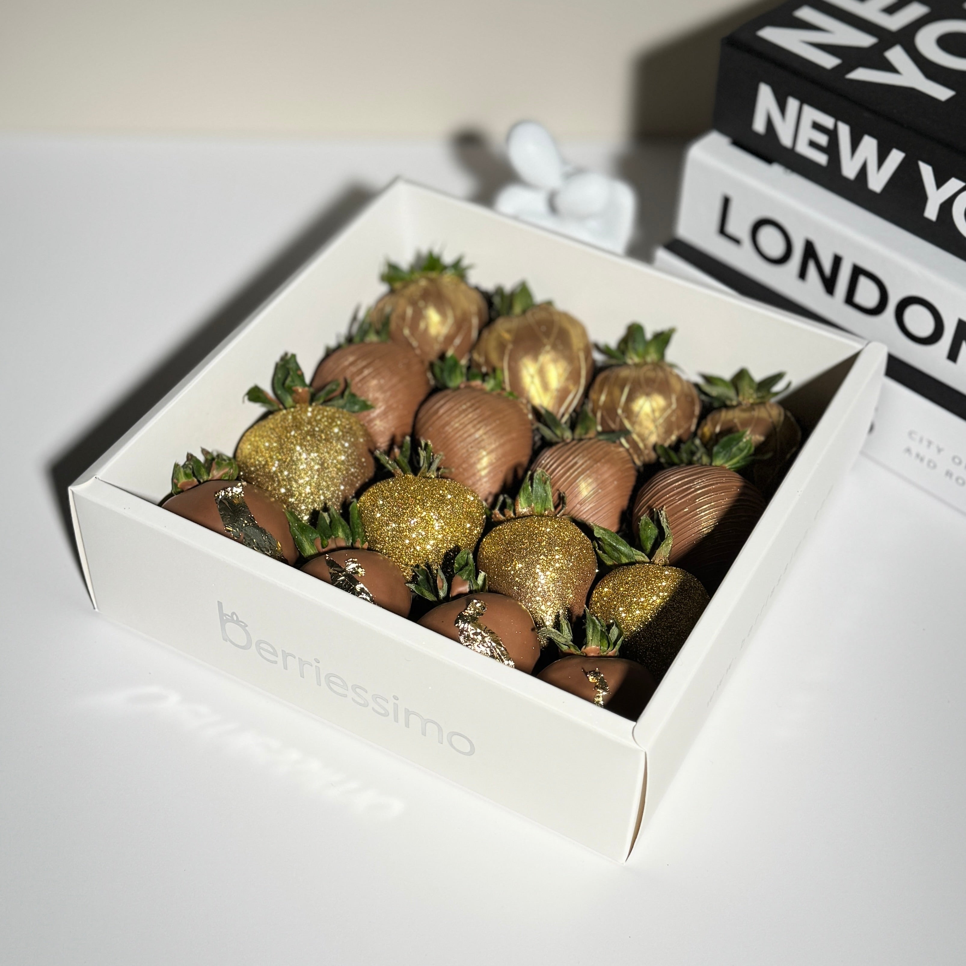 Treat yourself to the ultimate indulgence with fresh, juicy strawberries hand-dipped in velvety milk chocolate and adorned with shimmering edible golden glitter, luxurious luster dust, and elegant gold flakes. These decadent chocolate-covered strawberries offer a perfect blend of sweetness and sophistication. Ideal for special occasions, or as a stunning gift for someone special, they’re a true showstopper that will leave a lasting impression. Elevate your dessert experience with these gourmet chocolate strawberries.